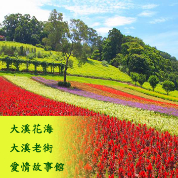 桃園大溪花海愛情故事館慈湖大溪老街自由行包車一日遊行程規劃:愛情故事館裡有甜蜜列車前往溫馨幸福的終點站;有白宮象徵我倆的愛情,愛情故事鐘樓:教堂的鐘除了報時之外還有另一個用途…..就是當作”求婚鐘”………園區內還有許多值得觀賞的場景。慈湖雕塑公園:是全世界唯一以單人為主題的雕像所。大大小小的雕像加總約一百八十尊銅像。大溪花海是一個以花海為主題的農場,一年四季都有不同的花朵綻放著, 美麗的花海也吸引不少電視劇和偶像劇到此取景, 這裡雖不比新社花海來得壯觀,但可觀賞期卻比它來得長久。到大溪者街品嘗著名的大溪豆干。(圖片資料皆來自網路)