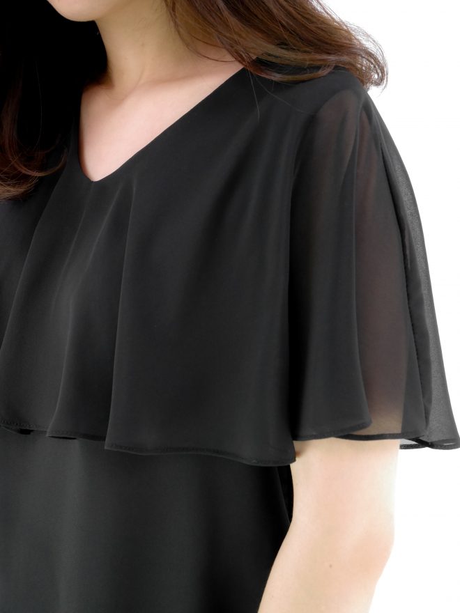 雙層V領雪紡上衣 – 黑色