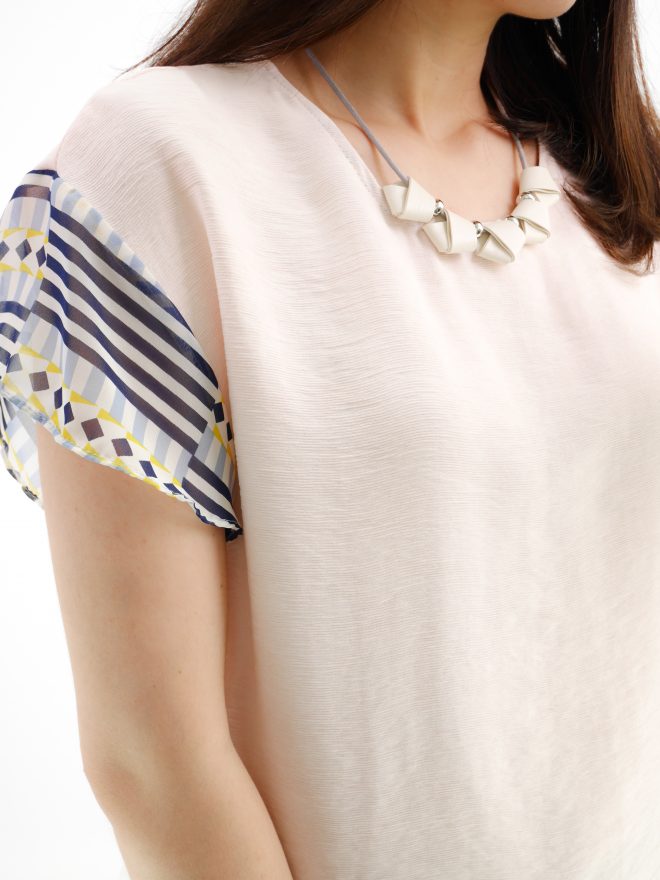圖案雪紡袖暗紋上衣 – 粉紅色