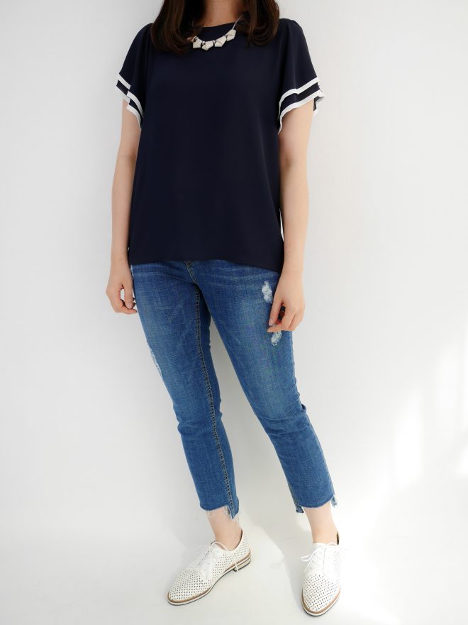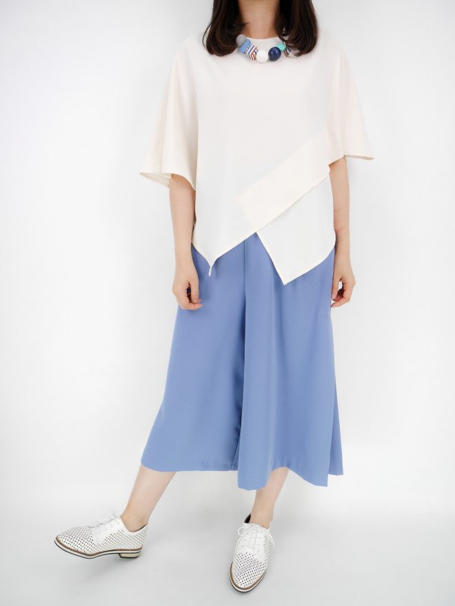 簡約不規則雪紡上衣 – 粉藍色