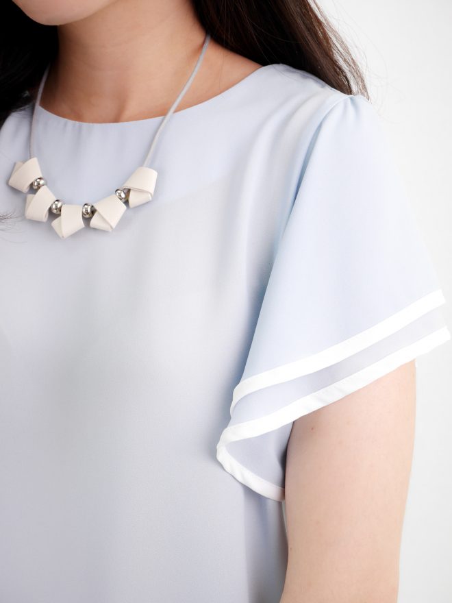 雙層寬袖圍邊雪紡上衣 – 粉藍色
